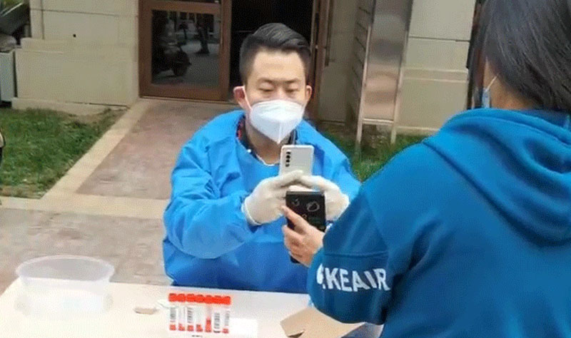 在核酸檢測現(xiàn)場志愿者們參與錄入信息、維持核酸檢測現(xiàn)場秩序、小區(qū)卡口執(zhí)勤等防疫工作。他們仔細(xì)核查每一位臨檢人員的健康碼和行程碼,提醒居民佩戴好口罩,保持一米線間隔距離,幫助老人和有需要的居民進(jìn)行身份信息驗證,保障臨檢人員有序進(jìn)行核酸檢測。