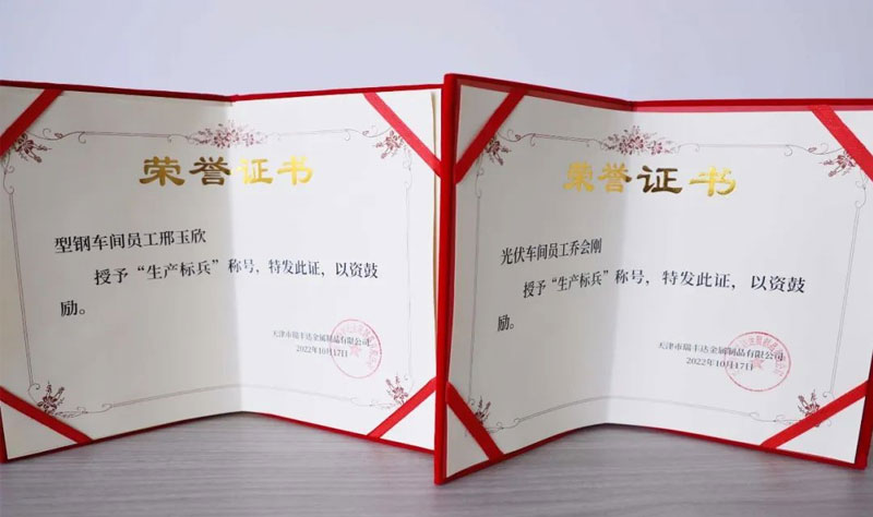 綜合車間員工整體表現(xiàn),經(jīng)公司領(lǐng)導(dǎo)決定,授予型鋼車間員工邢玉欣、焊接車間員工張殿海、光伏車間員工張萬華、喬會(huì)剛“生產(chǎn)標(biāo)兵”榮譽(yù)稱號(hào),并給予現(xiàn)金紅包獎(jiǎng)勵(lì),以資鼓勵(lì)。希望幾位員工,不驕不躁,再接再厲,繼續(xù)以飽滿的熱情迎接以后的工作。同時(shí)也希望更多員工向他們學(xué)習(xí),在公司后續(xù)的發(fā)展進(jìn)中發(fā)光發(fā)熱。