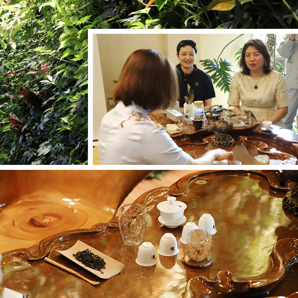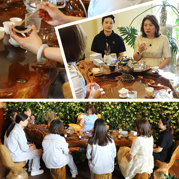 在王娟王總的帶領(lǐng)下,大家紛紛學(xué)習(xí)到了茶的沖泡技巧。從執(zhí)壺、持杯、聞香再到斟茶、品湯、致謝,一舉一動之間,展示出女性優(yōu)雅端莊的氣質(zhì),大家細(xì)細(xì)地互相品嘗著芳香的茶水,沉浸在優(yōu)美的意境之中,現(xiàn)場暖意融融,茶香馥郁芬芳。