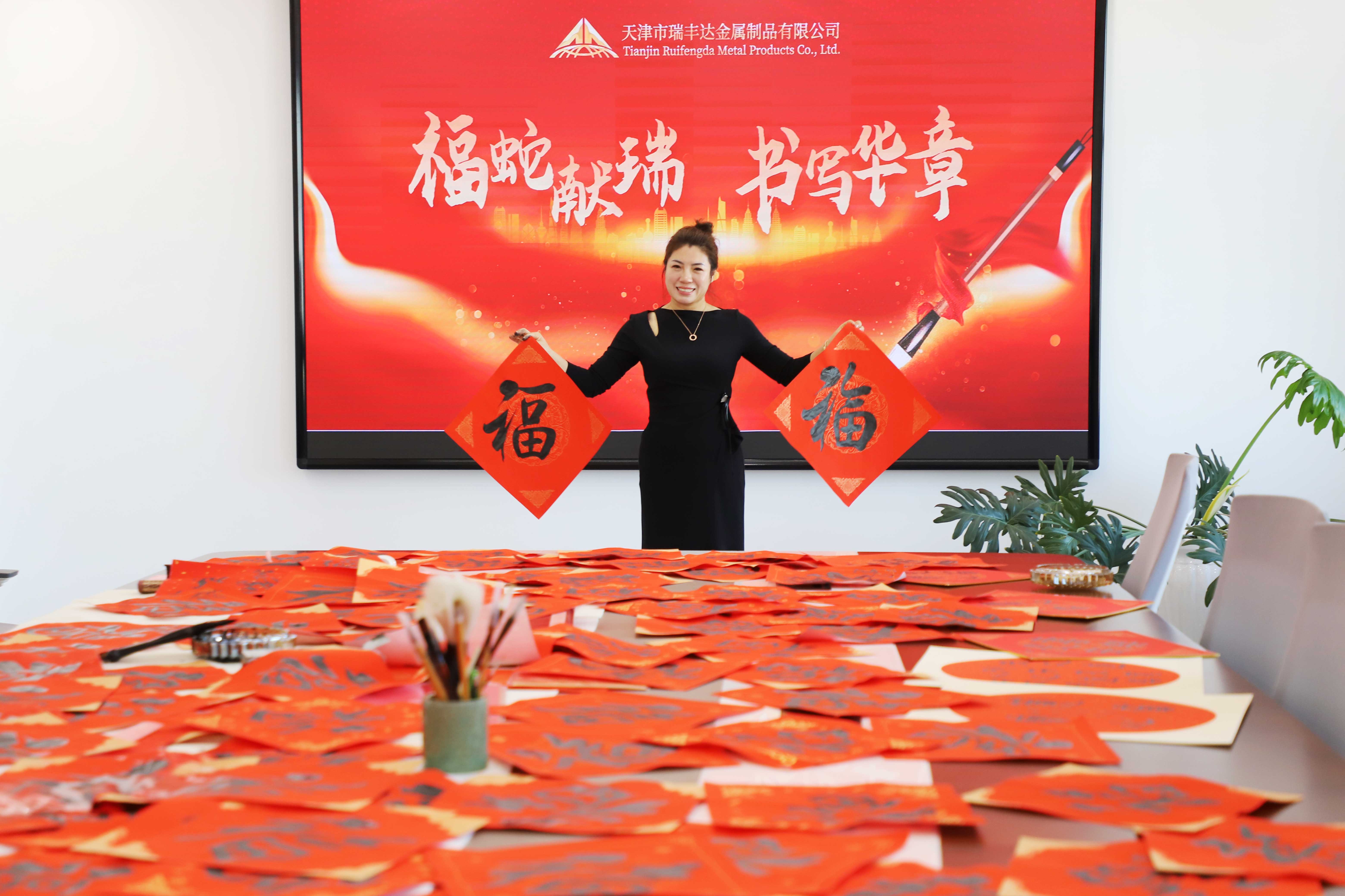 歲末辭舊迎新之際,天津市瑞豐達(dá)金屬制品有限公司組織了一場寫福字送祝福活動。在王娟王總的帶領(lǐng)下,員工們揮毫潑墨,共繪新春“福”韻。