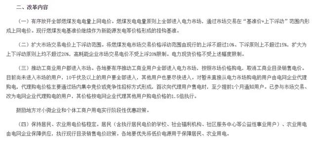? ? ? 10月12日,國家發(fā)改委印發(fā)《進一步深化燃煤發(fā)電上網(wǎng)電價市場化改革的通知》,明確表示燃煤發(fā)電電量原則上全部進入電力市場,通過市場交易在“基準(zhǔn)價+上下浮動”范圍內(nèi)形成上網(wǎng)電價。市場交易電價浮動范圍由現(xiàn)行的上浮不超過10%、下浮原則上不超過15%,擴大為上下浮動原則上均不超過20%,高耗能企業(yè)市場交易電價不受上浮20%限制,并全面推動工商業(yè)用戶進入市場,有序推動尚未進入市場的工商業(yè)用戶全部進入電力市場,取消工商業(yè)目錄銷售電價,促進工商業(yè)企業(yè)購電全部實現(xiàn)市場化,從即日起一個月內(nèi)為市場化交易的過渡期,從12月起,企業(yè)購電全面采用市場化電價來結(jié)算。