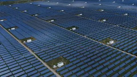 深藍(lán)色的光伏板熠熠生輝,風(fēng)力發(fā)電機(jī)的葉片迎風(fēng)飛轉(zhuǎn),百米高的吸熱塔和“鏡子海洋”組成科技感十足的熔鹽塔式光熱電站……真沒想到,塔拉灘這片半荒漠化的“風(fēng)沙之地”,如今卻成為千萬千瓦級的新能源基地。