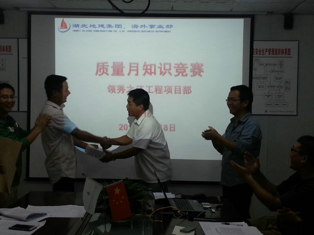 為積極落實(shí)“質(zhì)量月”活動(dòng)計(jì)劃,海外事業(yè)部領(lǐng)秀之江項(xiàng)目部于2013年10月8日開展了“質(zhì)量月知識(shí)競(jìng)賽”活動(dòng)。