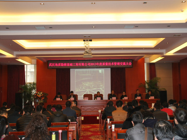 2014年1月8日,武基公司召開(kāi)了2013年度質(zhì)量技術(shù)管理交流大會(huì)。武漢市建筑工程質(zhì)量監(jiān)督站總工程師鄭祥斌,武漢市深基坑專家委員會(huì)成員向艷,中國(guó)地質(zhì)大學(xué)(武漢)勘察與基礎(chǔ)工程系書(shū)記、博士后導(dǎo)師竇斌教授,武漢沿海地產(chǎn)總經(jīng)理李曉龍等專家以及公司領(lǐng)導(dǎo)班子成員、公司各部門工作人員、各工程處技術(shù)管理人員等80多人參加了會(huì)議。