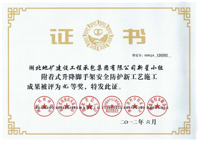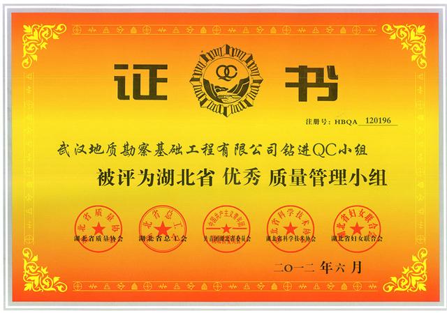 武基公司鉆進(jìn)QC小組《提高旋挖鉆機(jī)嵌巖施工效率》成果被評為二等獎,勘察公司礦山環(huán)境治理QC小組《提高高陡巖石坡面客土噴播綠化覆蓋率》成果被評為三等獎,地建承包公司新星小組《附著式升降腳手架安全防護(hù)新工藝施工》被評為優(yōu)等獎。武基公司鉆進(jìn)QC小組、勘察公司礦山環(huán)境治理QC小組和地建承包公司新星小組均被評為“湖北省優(yōu)秀質(zhì)量管理小組”。