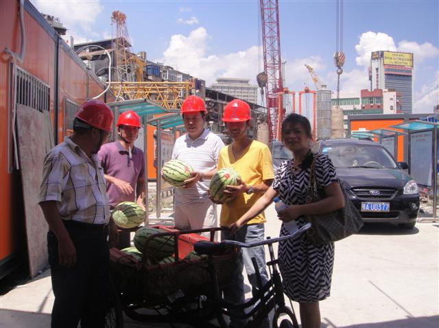 7月下旬,武漢持續(xù)高溫。武基公司一方面要求各在建工程項目部做好防暑降溫及安全生產(chǎn)工作,另一方面,公司工會和安全生產(chǎn)部聯(lián)合組成防暑降溫工作組,開展了給在建施工項目送清涼活動。