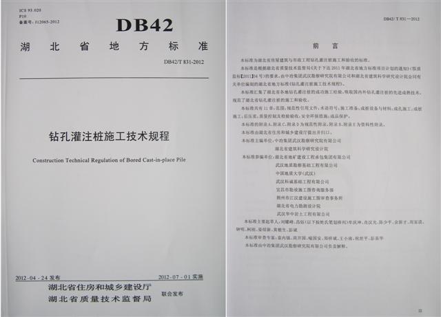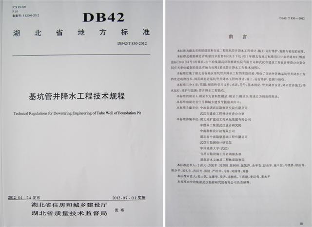 近日,我院參與編寫(xiě)的湖北省地方標(biāo)準(zhǔn)《基坑降水工程技術(shù)規(guī)程》(DB42/T830-2012)和《鉆孔灌注樁施工技術(shù)規(guī)程》(DB42/T831-2012)經(jīng)湖北省住房和城鄉(xiāng)建設(shè)廳及湖北省質(zhì)量技術(shù)監(jiān)督局審查通過(guò)并批準(zhǔn)頒布實(shí)施。這二項(xiàng)湖北省地方技術(shù)標(biāo)準(zhǔn)正式頒布實(shí)施標(biāo)志著工程院在編寫(xiě)技術(shù)標(biāo)準(zhǔn)方面有了重大的突破,可增強(qiáng)工程院在該技術(shù)領(lǐng)域的話語(yǔ)權(quán),提高社會(huì)知名度。