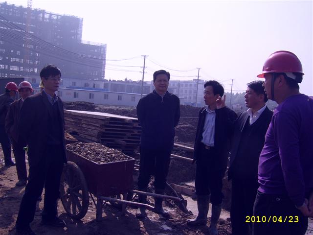2010年4月23日,漢南區(qū)區(qū)委書記曹裕江、區(qū)發(fā)改委主任黃忠華等一行到承包公司湖北國土資源職業(yè)學(xué)院漢南項目調(diào)研。曹裕江聽取了項目執(zhí)行經(jīng)理張煥生同志關(guān)于施工進度情況的匯報,實地察看了項目的建設(shè)情況,了解了施工過程中需要區(qū)委幫助協(xié)調(diào)解決的問題和困難,并就項目建設(shè)情況給予了一些具有指導(dǎo)性的意見和建議。
