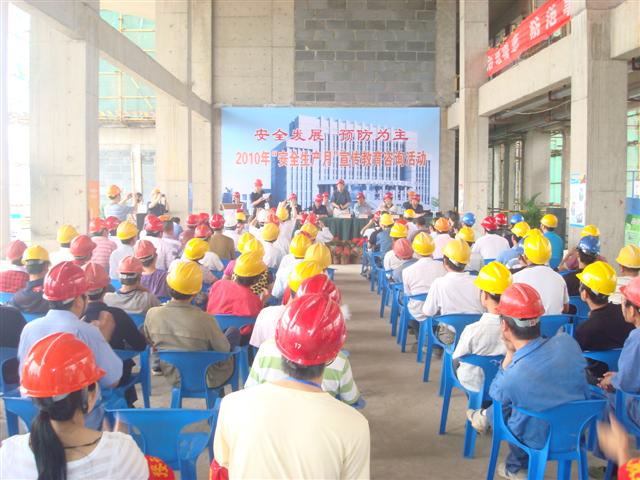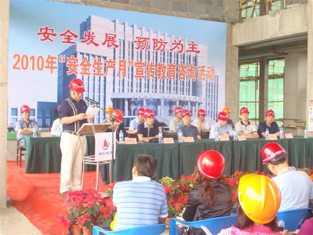 2010年6月13日由省地礦局工程地質(zhì)處主辦,湖北地建集團承辦的“安全生產(chǎn)月宣傳教育咨詢活動”在湖北國土資源職業(yè)學(xué)院漢南新校區(qū)項目隆重舉行,省地礦局副局長曾環(huán)宇、副巡視員葉明瑞、工程地質(zhì)處處長沈順照、工會主席鐘偉,湖北地建集團董事長兼總經(jīng)理程立文出席了活動。本次活動,通過宣傳黨和國家安全生產(chǎn)的方針政策和法律法規(guī),普及了安全生產(chǎn)基礎(chǔ)性知識,突出了“安全發(fā)展、預(yù)防為主”的主題,讓“安全第一”的觀念深入人心,為全局營造了“關(guān)愛生命、關(guān)注安全”的濃厚氛圍。