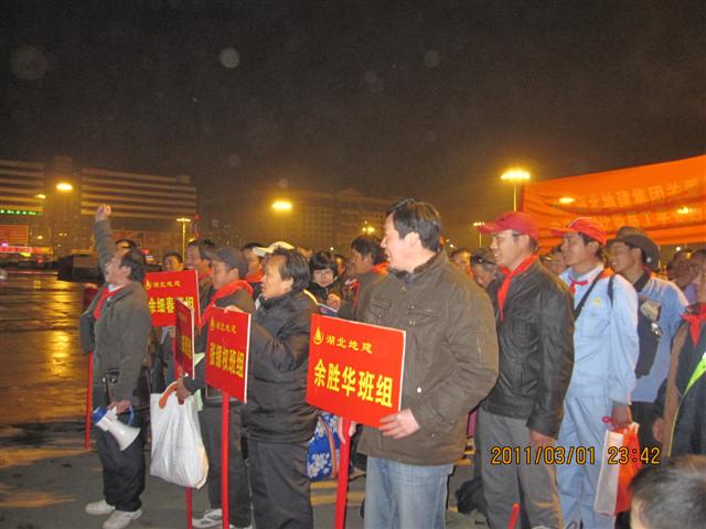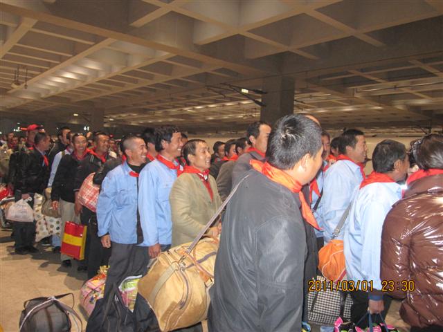 3月1日23時(shí)20分,第二批湖北地建集團(tuán)駐利比亞項(xiàng)目工程人員共106名,乘坐北京-武漢的D121次列車(chē)安全抵達(dá)武漢,地建集團(tuán)總經(jīng)理程立文、黨委書(shū)記吳國(guó)才等到車(chē)站迎接。按撤離預(yù)案,撤離回國(guó)的人員的先后順序?yàn)榕?、勞?wù)人員、管理人員,項(xiàng)目部管理骨干和黨員最后撤離,這次撤離的主要是勞務(wù)人員。