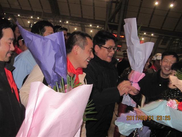 列車(chē)準(zhǔn)時(shí)進(jìn)站,106名佩戴紅領(lǐng)巾的勞務(wù)人員平安抵達(dá),歡迎人員敬獻(xiàn)了鮮花,地建集團(tuán)領(lǐng)導(dǎo)向他們?cè)敿?xì)詢問(wèn)了撤離情況,對(duì)員工的安全歸來(lái)表示熱烈的歡迎,并一一握手問(wèn)候。長(zhǎng)江日?qǐng)?bào)、楚天都市報(bào)、湖北經(jīng)視直播、我愛(ài)武漢等新聞媒體也早早的來(lái)到了現(xiàn)場(chǎng),用相機(jī)、攝影機(jī)記錄下了這一動(dòng)人的場(chǎng)景,并在第一時(shí)間報(bào)道,工人朋友對(duì)在場(chǎng)的領(lǐng)導(dǎo)表示最誠(chéng)摯的感謝,并齊聲高呼“感謝祖國(guó),祖國(guó)萬(wàn)歲”。