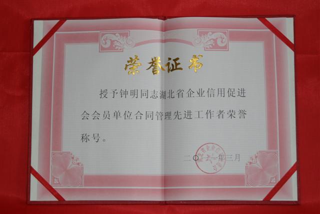 近日,湖北省工商局、省企業(yè)信用促進(jìn)會(huì)在武昌洪廣大酒店聯(lián)合舉辦2011年度湖北省企業(yè)信用促進(jìn)理事會(huì)。武基公司作為企業(yè)會(huì)員單位參加了會(huì)議,公司總工程師鐘明被評(píng)為“湖北省企業(yè)信用促進(jìn)會(huì)會(huì)員單位合同管理先進(jìn)工作者”榮譽(yù)稱號(hào)。