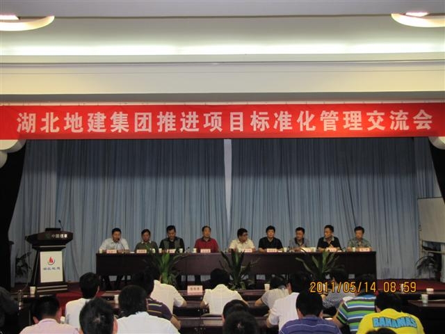 2011年5月14日,湖北地建集團(tuán)在漢口寶豐賓館舉行了項(xiàng)目標(biāo)準(zhǔn)化管理交流會(huì)。武漢市建筑行業(yè)專家領(lǐng)導(dǎo)、集團(tuán)領(lǐng)導(dǎo)、機(jī)關(guān)工作人員、海外事業(yè)部、黃石分公司、花明公司、中楚公司和公司項(xiàng)目管理人員共74人參加了會(huì)議。