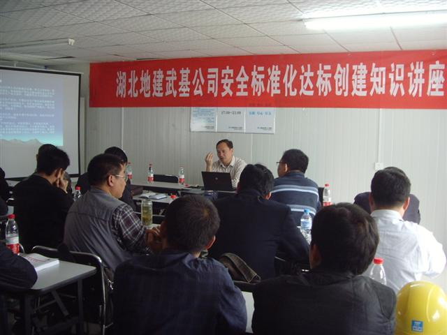 4月17日,武基公司在武漢綠地中心樁基施工項(xiàng)目部舉辦了一期安全標(biāo)準(zhǔn)化達(dá)標(biāo)創(chuàng)建知識(shí)講座。局工程地質(zhì)處副處長(zhǎng)周興和應(yīng)邀進(jìn)行了授課,武基公司領(lǐng)導(dǎo)、各工程處班子成員、專職安全員、技術(shù)員和施工員40余人參加了講座。